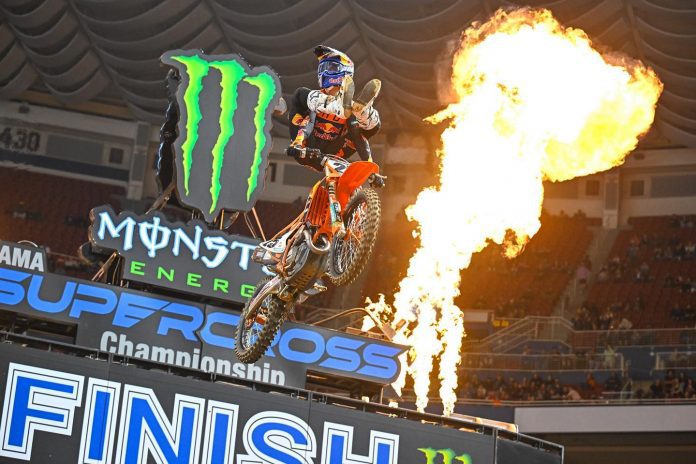 Após a pausa da semana passada, o AMA Supercross retornou nesse sábado para a 13ª etapa da competição, disputada em St. Louis. Uma etapa marcada por quedas e incidentes envolvendo pilotos das duas categorias, dentre eles o brasileiro Enzo Lopes que sofreu com incidentes nas três baterias do dia e finalizou apenas na 12ª colocação na soma da etapa, disputada em formato “Triple Crown”.