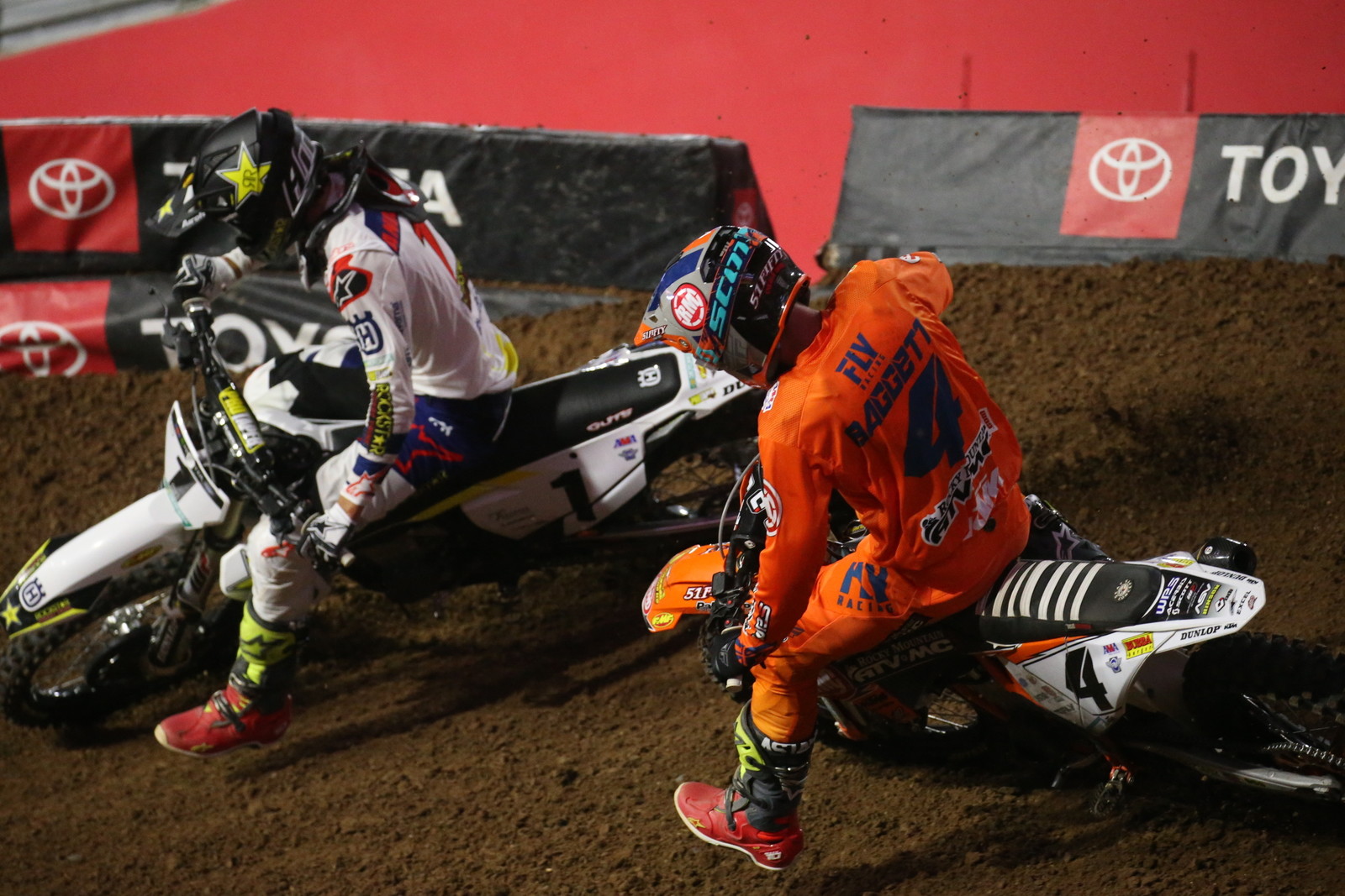 Nas 450cc uma noite intensa, Ken Roczen pulou na frente e vinha abrindo vantagem sob Jason Anderson até que Malcom Stewart sofreu um gravíssimo acidente depois das costelas, virando de frente e a corrida foi interrompida para o socorro de Malcom que sofreu uma fratura no fêmur e passa por cirurgia hoje, ele vinha muito bem nas disputas e estava sempre presente entre os TOP5, a relargada foi feita através de fila indiana conforme a corrida havia parado, com isso Anderson saiu na “bota” de Roczen e acabou ultrapassando o alemão e ainda o levando ao chão, na queda Roczen foi a 5ª posição, mas se recuperou até o 3º lugar, Blake Bagget que era o segundo roubou a cena nas últimas voltas, ultrapassando Anderson e vencendo a prova, Roczen é o novo líder do campeonato com a diferença de 1 ponto para Justin Barcia que foi apenas o 6º colocado nessa etapa!