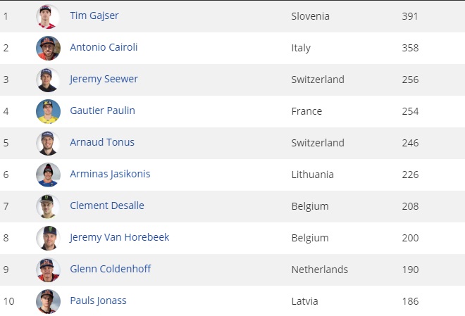 Os 3 primeiros colocados: Tim Gajser, Arnoud Tonus e Romain Fevbre, fecharam com a mesma pontuação na geral, porém Tim Gajser saiu como vitorioso por ter conquistado a vitória na segunda bateria.