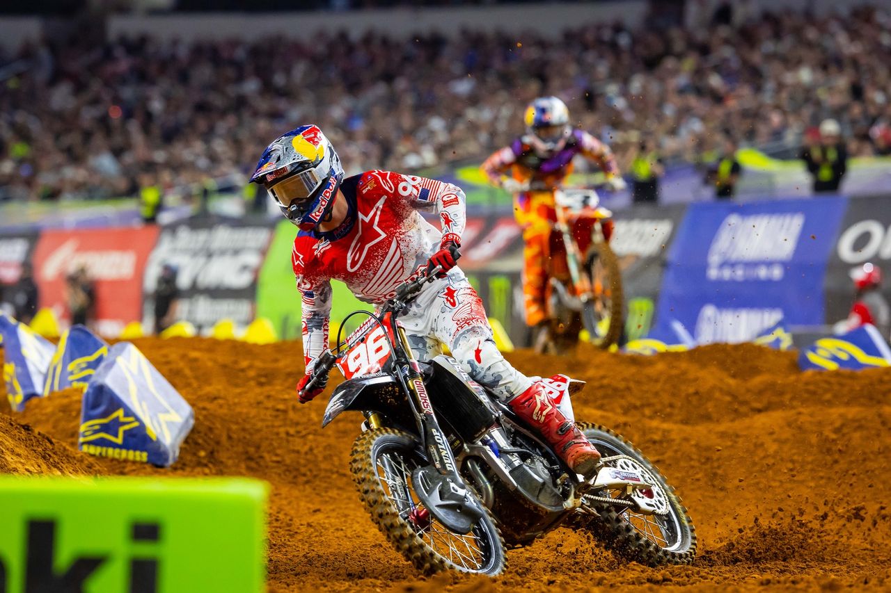 Nos últimos instantes, Lawrence resistiu à pressão de Tomac e garantiu sua primeira vitória na categoria principal, com 2,8 segundos de vantagem. Webb completou o pódio em terceiro, seguido por Roczen. Foi a 26ª largada de Lawrence na categoria, no mesmo palco de sua primeira vitória na 250SX, em 2021. Ele se tornou o quinto vencedor diferente da temporada e ampliou sua liderança para quatro pontos sobre Tomac.