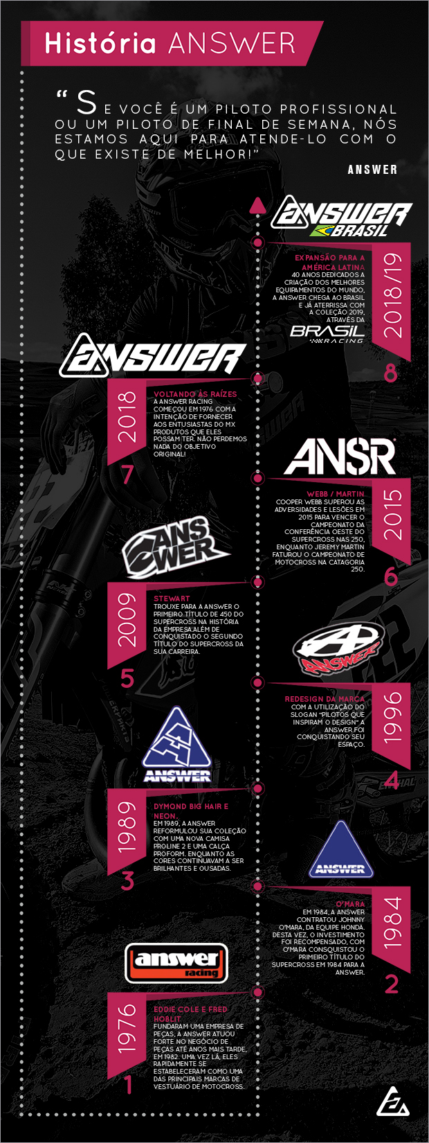 Coleção 2019 da ANSWER RACING, disponível nas melhores lojas do segmento.