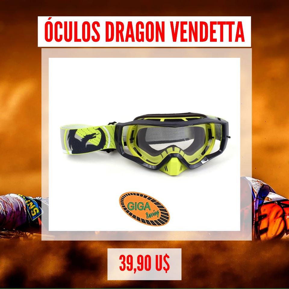 Óculos Dragon Vendetta – nossos parceiros do mercosul, a loja Paraguai, Giga Racing também nos enviou ofertas especiais para os pilotos que competem nos países vizinhos e desejam conhecer a loja na Ciudad Del Leste, para fazer contato com a loja CLIQUE AQUI