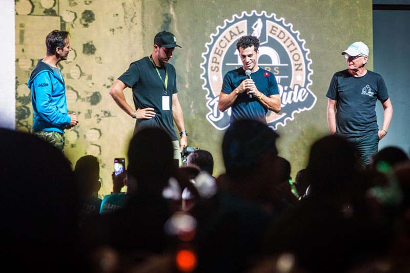 O aluno da escola municipal de Arraial d’Ajuda, Ryan, de 15 anos, foi diagnosticado com câncer há cinco meses e não tem recursos para o tratamento. Por isso, Mario Roma chamou ao palco o campeão europeu Tiago Ferreira, o campeão mundial Henrique Avancini e Ryan. Contou a todos a luta de Ryan e disse que a Specialized estava doando uma bicicleta para uma rifa de arrecadação de recursos para o tratamento do adolescente. Tiago e Avancini doaram uma camiseta autografa cada e o brasileiro ainda entregou um capacete, bens que entrarão em um leilão. Mario, então, pediu a todos que quisessem colaborar para enviar e-mail para a Brasil Ride, br@brasil.com.br, que serão informados de uma conta para ajudar Ryan.