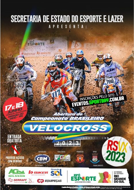 No próximo fim de semana a cidade de Arroio do Meio/RS recebe a etapa de abertura do Brasileiro de Velocross. As disputas acontecerão no Parque Municipal da cidade que possui estrutura completa com, ampla área de box, água, luz, banheiros e praça de alimentação, para receber os pilotos e equipes de todo o Brasil.
