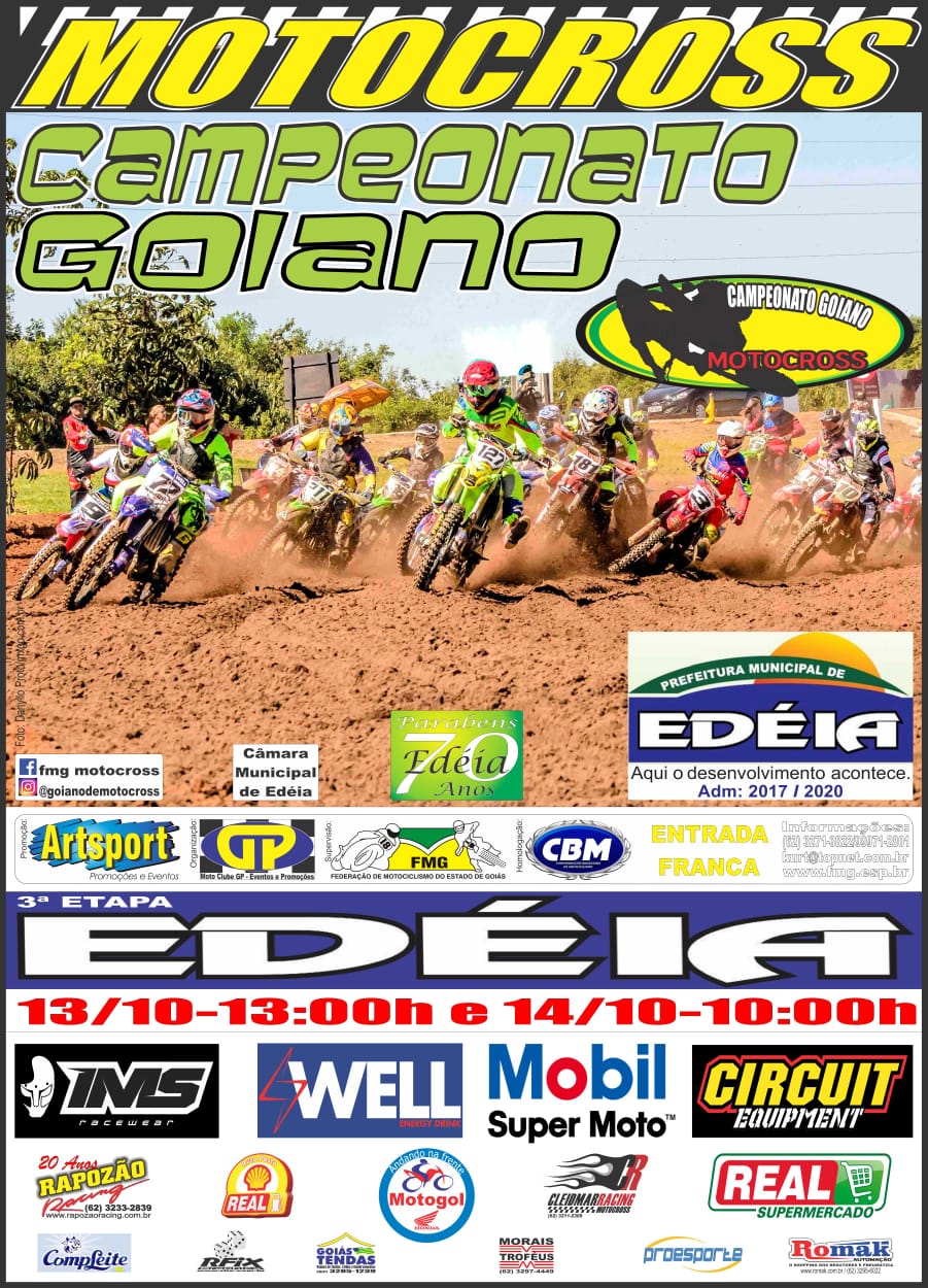 etapa que acontecerá nos dias 13 e 14 de outubro. Edéia, localizada a 120 km de Goiânia será sede pela decima terceira vez de uma prova de Motocross e nada melhor que uma prova importante de um torneio também importante, onde as disputas estão em aberto em todas as categorias componentes do Campeonato Goiano.