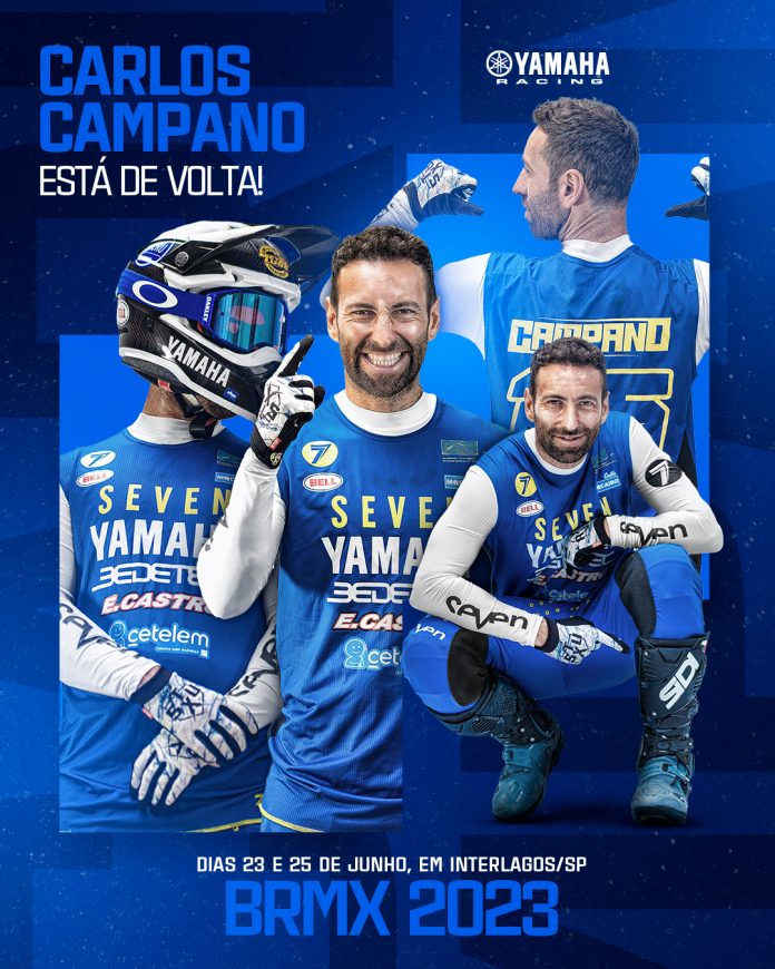 O pentacampeão brasileiro de motocross, Carlos Campano, voltará a competir no Brasil nas duas próximas etapas do campeonato nacional, em Interlagos, São Paulo, nos dias 23 e 25 de junho.