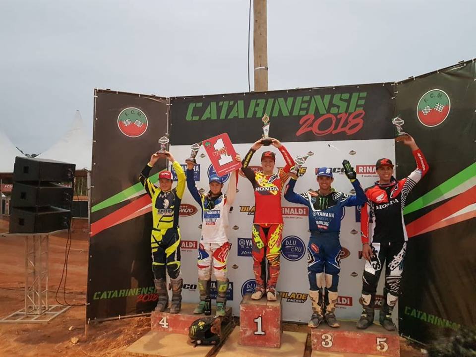 Rafael Becker acelerou forte entre os jovens competidores e conquistou a vitória da categoria 65cc na 3ª etapa do Campeonato Catarinense de Motocross, realizado no Motódromo Marronzinho, na cidade de São José (SC). Na competição, que contou com a presença dos melhores pilotos do país, Rafael Faria também garantiu seu lugar no pódio para a equipe DropMud, com o 3º lugar na MX3 e o 4º lugar na Elite.