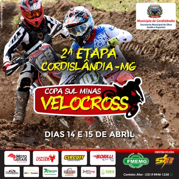 Cordislândia recebe a segunda etapa da Copa Sul Minas de Velocross nos dias 14 e 15 de abril, com uma excelente estrutura de pista, organização de primeira, confiram os dados da prova a seguir!