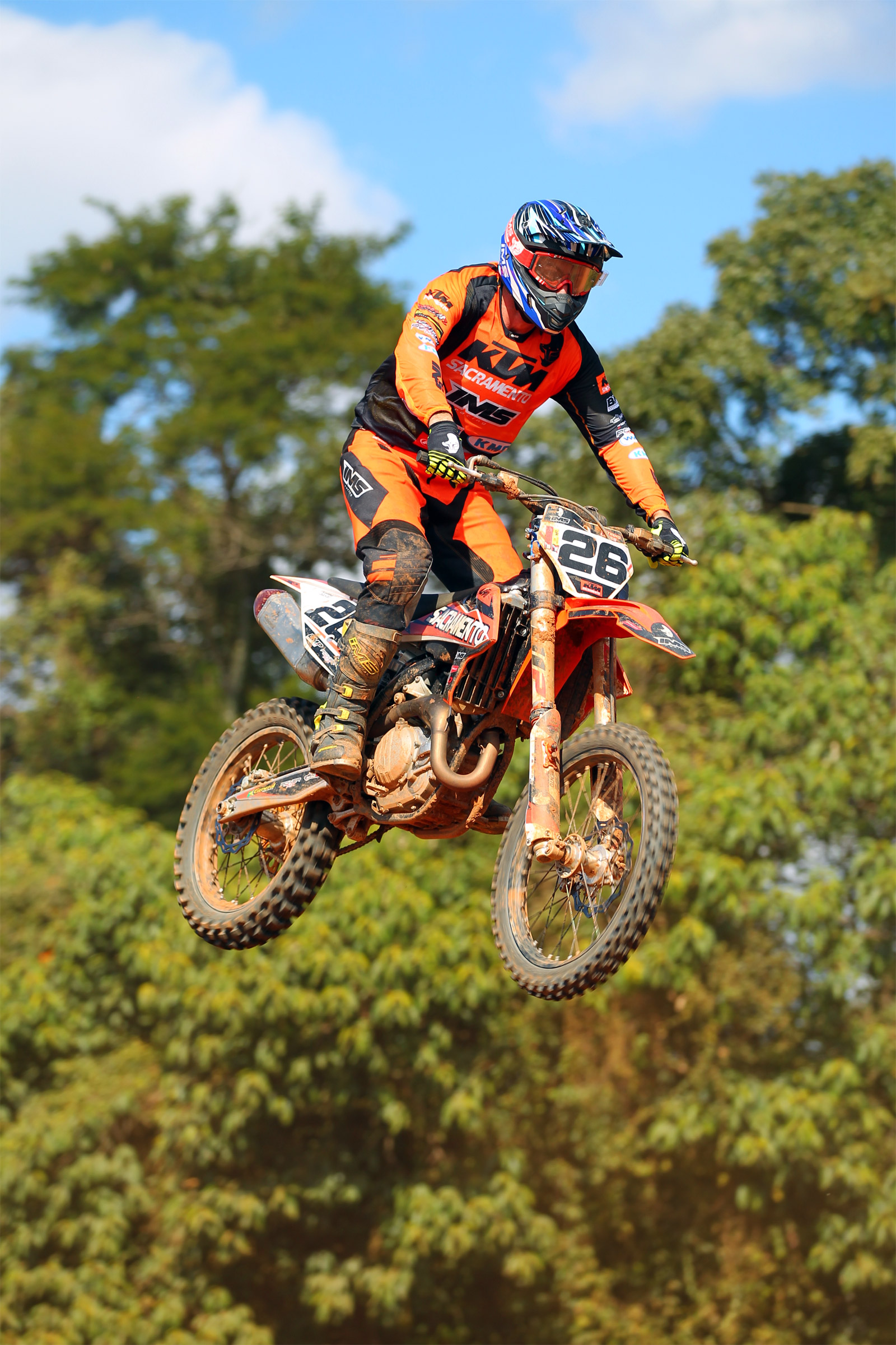 O fim de semana foi de celebração para a equipe KTM Sacramento IMS Racing. O time laranja foi destaque na segunda etapa da Copa São Paulo de Motocross, em Itupeva, com os pilotos Cristiano Lopes e Wellington Valadares conquistando as vitórias nas classes MX4 e MX5, respectivamente. Ambos dominaram as baterias de suas categorias na corrida realizada na famosa pista Kalango Cego.