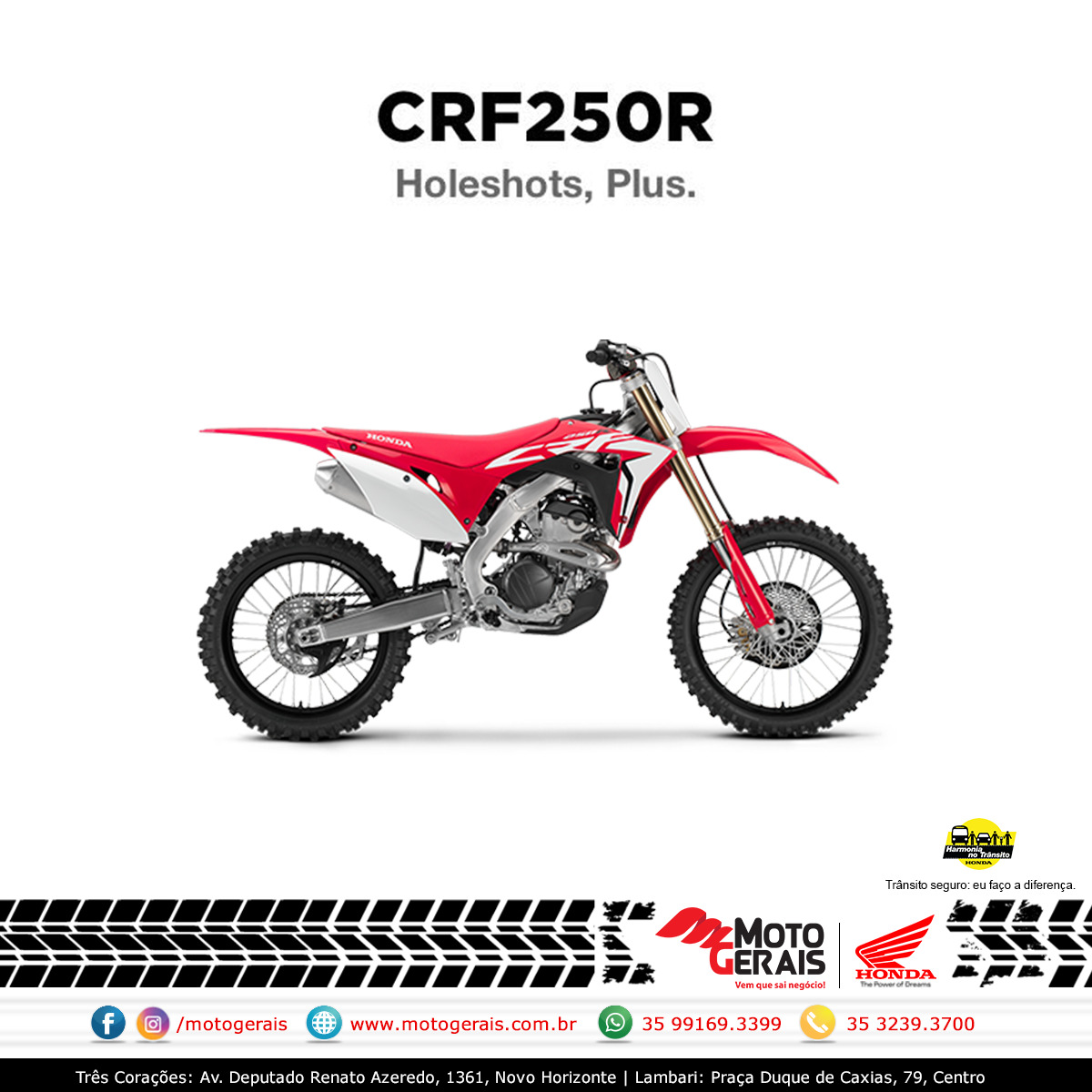 A concessionária e importadora Honda do sul de Minas, a conceituada MotoGerais anuncia as previsões de entrega das primeiras motocicletas da nova linha CRF 2019 em sua loja, ainda dá tempo de entrar em contato com a loja e pedir a sua!