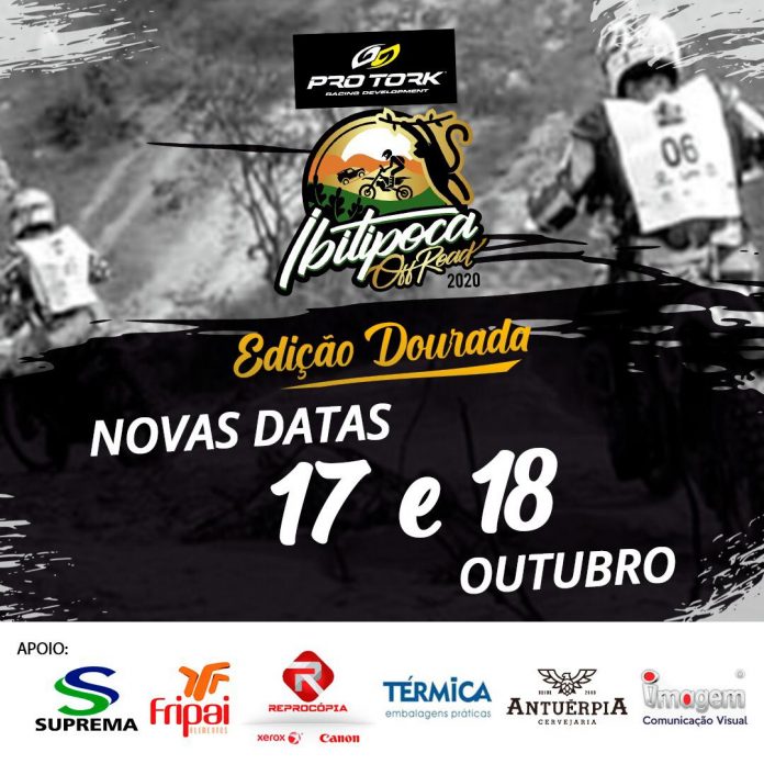 A coordenação do 31º Pro Tork Ibitipoca Off Road informa a pilotos, navegadores, imprensa, patrocinadores e amigos: a prova deste ano, batizada como Edição Dourada, inicialmente programada para os dias 1º e 2 de agosto, foi transferida para os dias 17 e 18 de outubro de 2020.