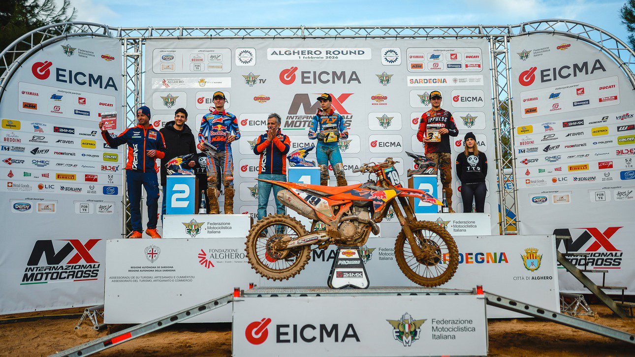 O Internazionali d’Italia MX começou em grande estilo neste domingo (1º), em Alghero. A pista arenosa da ilha da Sardenha, na Itália, recebeu a primeira rodada da competição que serve como preparação para a abertura do MXGP. As chuvas dos dias anteriores tornaram o traçado ainda mais desafiador em uma etapa onde os belgas Lucas e Sacha Coenen foram os grandes nomes do dia.