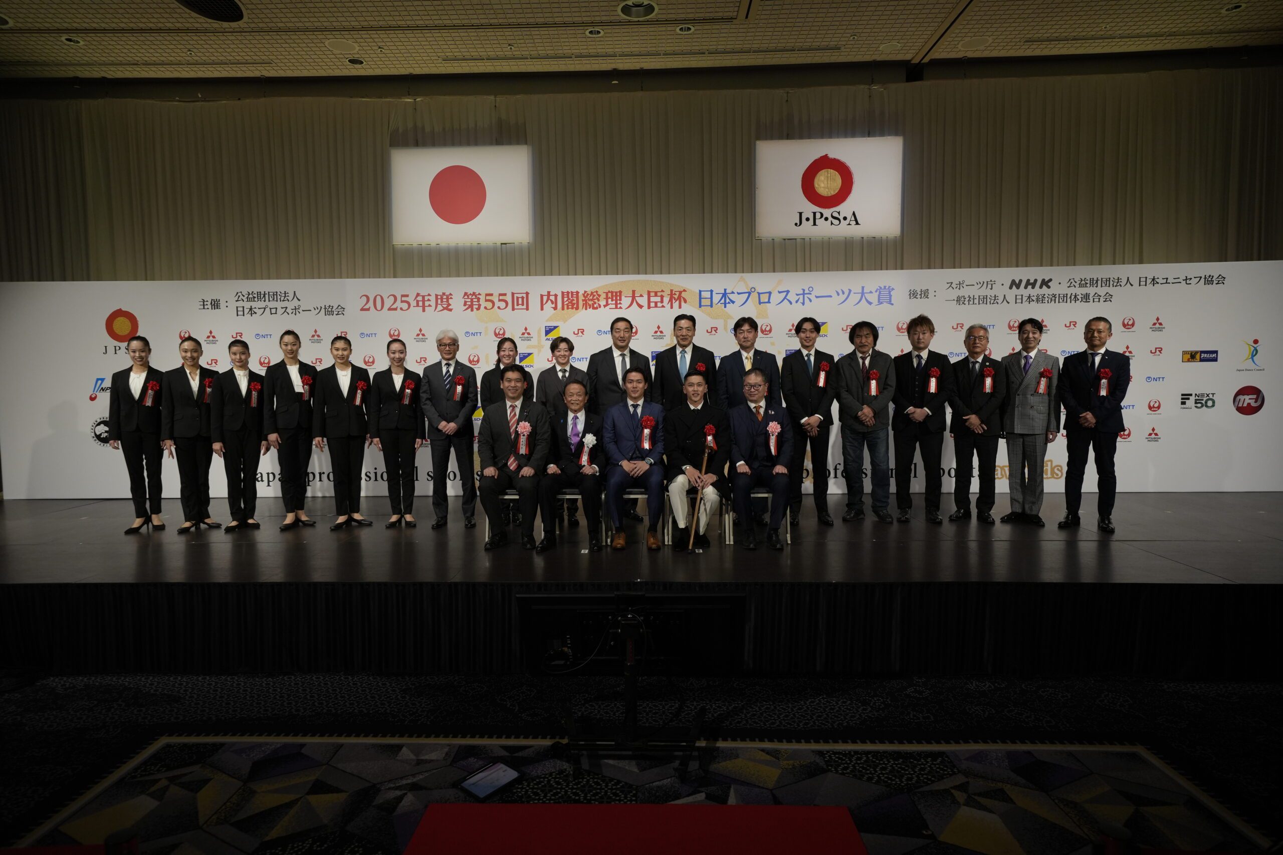 Com o objetivo de “contribuir para o desenvolvimento e promoção do mundo dos esportes profissionais no Japão”, o Grande Prêmio de Esportes Profissionais do Japão é organizado pela Associação Japonesa de Esportes Profissionais. Os vencedores são selecionados por um comitê de representantes de organizações de mídia esportiva de Tóquio, incluindo jornais, televisão, rádio e agências de notícias. Exceto por um hiato de três anos entre 2019 e 2021, os prêmios são organizados anualmente desde 1968, com o Grande Prêmio normalmente sendo concedido a atletas de esportes tradicionais, incluindo beisebol, boxe, sumô, golfe, tênis e futebol. O vencedor do Grande Prêmio deste ano foi o MVP da World Series dos Los Angeles Dodgers, Yoshinobu Yamamoto, que estava sentado na mesma mesa que Shimoda.