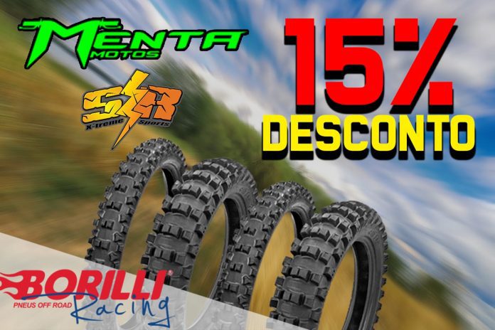 A loja nossa anunciante, MENTA MOTOS de Belo Horizonte-MG, revendedora dos pneus Borilli Racing, marca também anunciante do site Show Radical. Traz para você visitante da nossa mídia uma oferta exclusiva de até 15% de desconto em todos os modelos de pneus Borilli no estoque da Menta Motos.