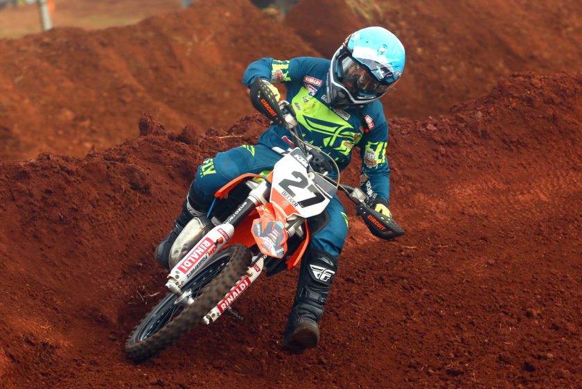 “Larguei bem, em terceiro, e já estava quase chegando no segundo quando comecei a sentir problemas nos freios da moto por causa do barro”, explicou o piloto. “Os tear-offs (lentes sobressalentes) dos meus óculos também acabaram e parei no pit (lane) para trocá-los e ver o freio. Voltei ainda sem freio e continuei até o fim acabando na quinta posição. Agora vou trabalhar duro para a abertura do Brasileiro de Motocross, no dia 14 de abril”, completou o catarinense de apenas 12 anos.