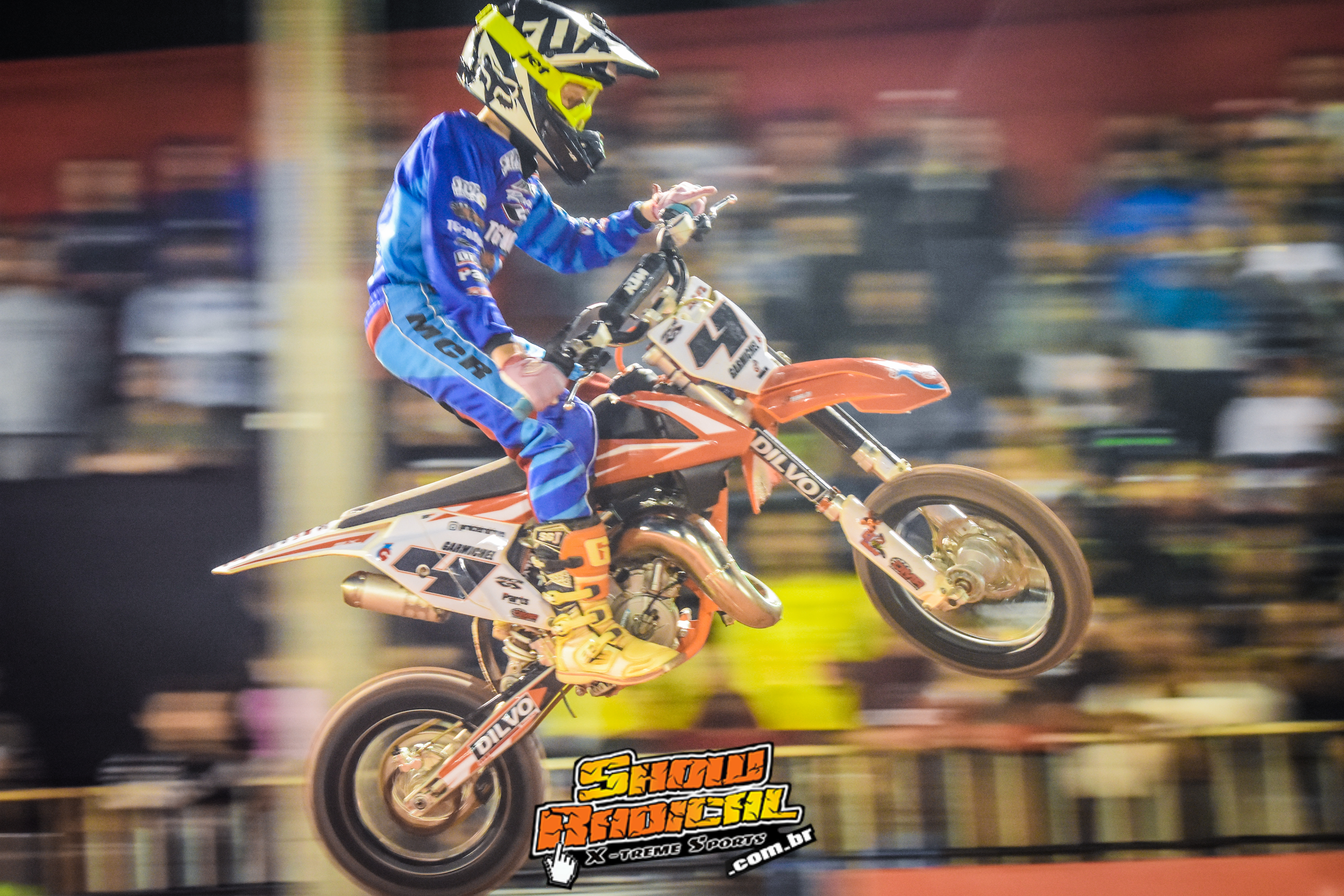 A disputa mais charmosa do Arena Cross cumpriu com seu papel e retirou suspiros do público presente. Com pequenos talentos nas motos, o show ficou por conta do piloto Francisco Emílio #06 que dominou a bateria e sagrou-se vencedor com certa tranquilidade. Na segunda colocação, chegou o piloto Gustavo Torres #712, seguido de perto pelo pequeno Breno Aguiar #222, que completou a lista com os três primeiros colocados.