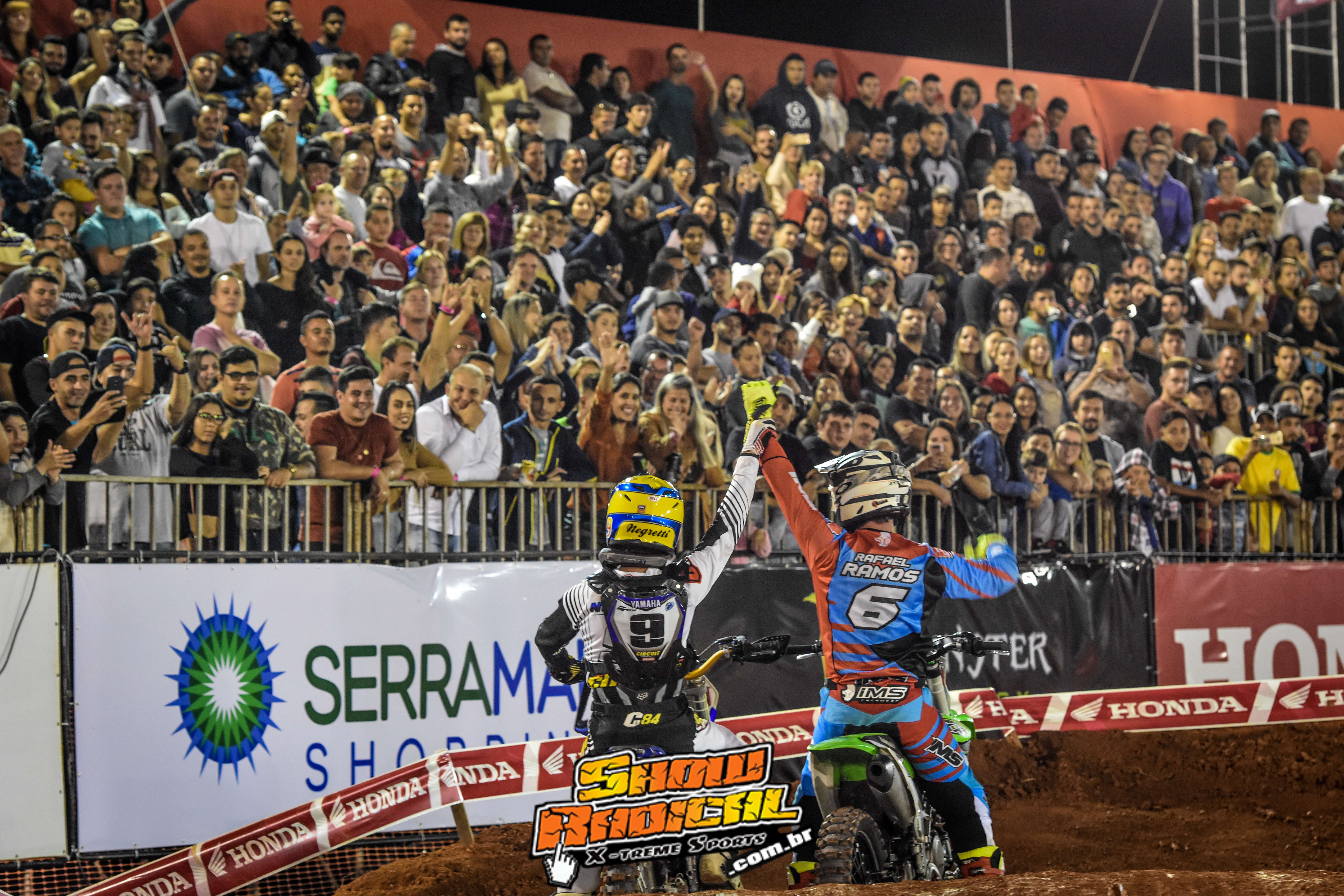 De volta nas disputas do Arena Cross para a temporada 2018, a categoria que mais revela talentos no motocross trouxe uma grandiosa disputa entre dois pilotos que certamente farão parte de um promissor futuro da modalidade. Garmichel Rodrigues #04 e Rafael Becker #07 travaram um emocionante duelo em boa parte da prova. Becker largou na frente e liderou por algumas voltas, mas viu Garmichel completar uma prova impecável. Sem falhas, o piloto assumiu a ponta e abriu mais de sete segundos de vantagem sobre o seu principal oponente, confirmando sua primeira vitória na competição. A terceira colocação ficou com o piloto Felipe Marques #160, que completou a lista dos melhores da categoria.