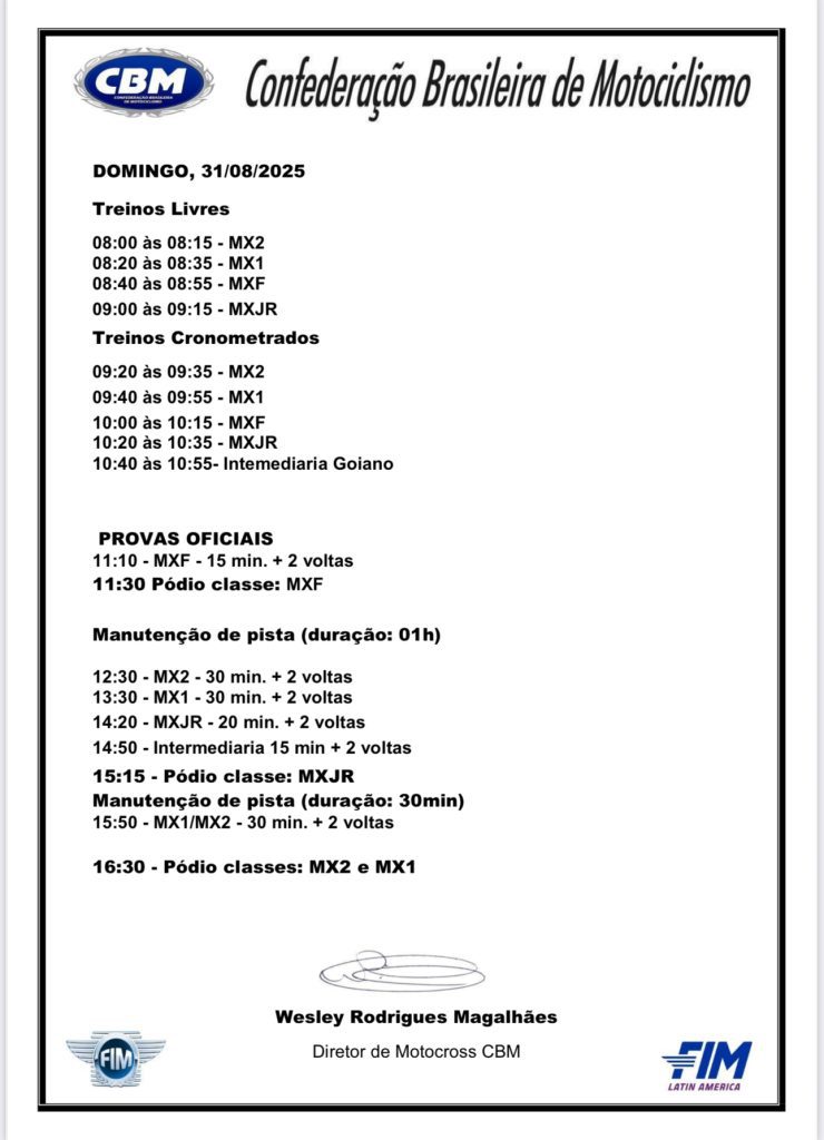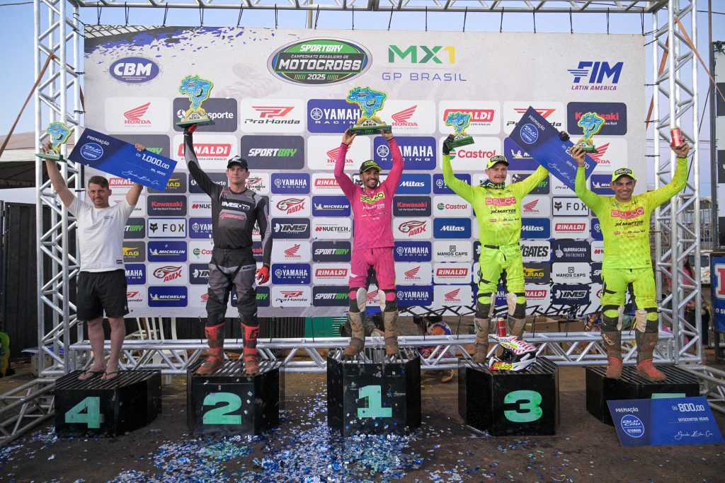 Rio Verde, GO – A penúltima etapa do MX1GP Brasil de Motocross 2025 ferveu neste sábado com seis categorias agitando o público em Rio Verde. O dia foi decisivo, consagrando campeões antecipados e celebrando vitórias maiúsculas em corridas que testaram a habilidade e a estratégia dos pilotos. Da experiência dos veteranos da MX3 e MX4 à garra das novas gerações nas 50cc, 65cc, MX2 Júnior e na Superfinal da IMS YZ125, a emoção foi garantida do início ao fim.
