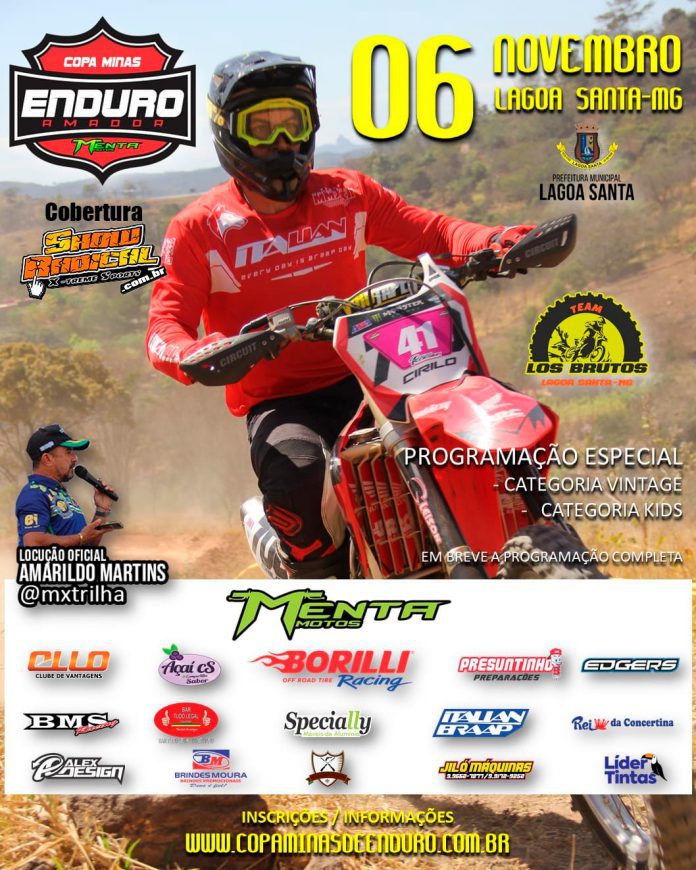 Depois de um ano de muito sucesso, crescimento e colheita como evento a Copa Minas de Enduro a partir de agora passará a contar com a divulgação e a cobertura completa do site Show Radical. E o início dessa parceria já será no próximo dia 06/11, na cidade de Lagoa Santa-MG na Super Final do evento! Onde teremos a cobertura fotográfica, a divulgação dos resultados completos aqui no site e o vídeo oficial com os melhores momentos da prova.
