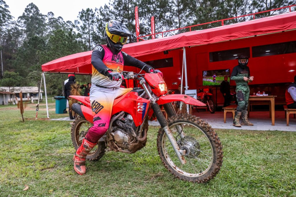 Durante o test ride, Tiago Lopes iniciou em trecho mais fluido para “sentir o motor” e conduziu por trechos com lama, especiais técnicas com descidas e subidas para notar a estabilidade e frenagem da CRF 300F. Ele relata: