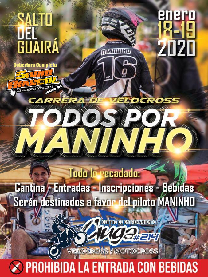 Esporte também é solidariedade e um manifesto disso acontece dias 18 e 19 de janeiro. Na ocasião, será realizado o evento Todos por Maninho, uma prova de velocross para angariar fundos ao tratamento do piloto Marciano Rausis. O encontro ocorre em Salto del Guairá, cidade paraguaia vizinha de Guairá, no Paraná, e conta com o apoio da Federação Paranaense de Motociclismo – FPRM.