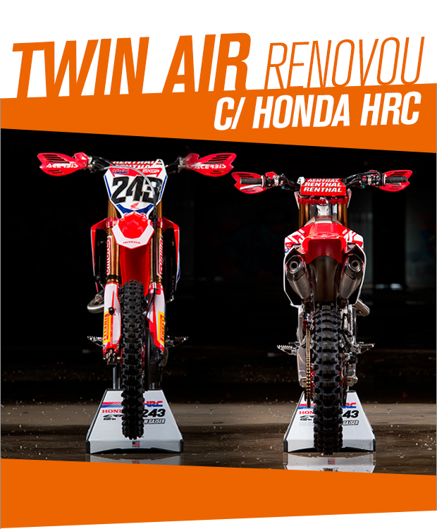 Líderes mundiais em tecnologia de filtro de ar, a Twin Air trabalhou com a Honda para ganhar corridas de motocross e campeonatos mundiais por mais de duas décadas, e está orgulhosa em anunciar a continuação desse relacionamento por mais três anos. A empresa holandesa fornecerá para as Honda CRF do Team HRC no Campeonato Mundial de Motocross da FIM até o final da temporada de 2021, seus filtros de ar, produtos de limpeza de filtros, tampas de ar e outros. Com um excelente equilíbrio de proteção contra partículas e máximo fluxo de ar para maior potência, os filtros Twin Air são o complemento ideal para as Honda CRF250R e CRF450R, garantindo potência absoluta, juntamente com durabilidade e proteção que já são amplamente conhecida. Com a temporada 2018 do MXGP finalizado, o desenvolvimento da pré-temporada do Team HRC em 2019 já está em andamento com a Twin Air no centro do desenvolvimento de produtos para as Honda CRF450RW e CRF250RW de 2019.