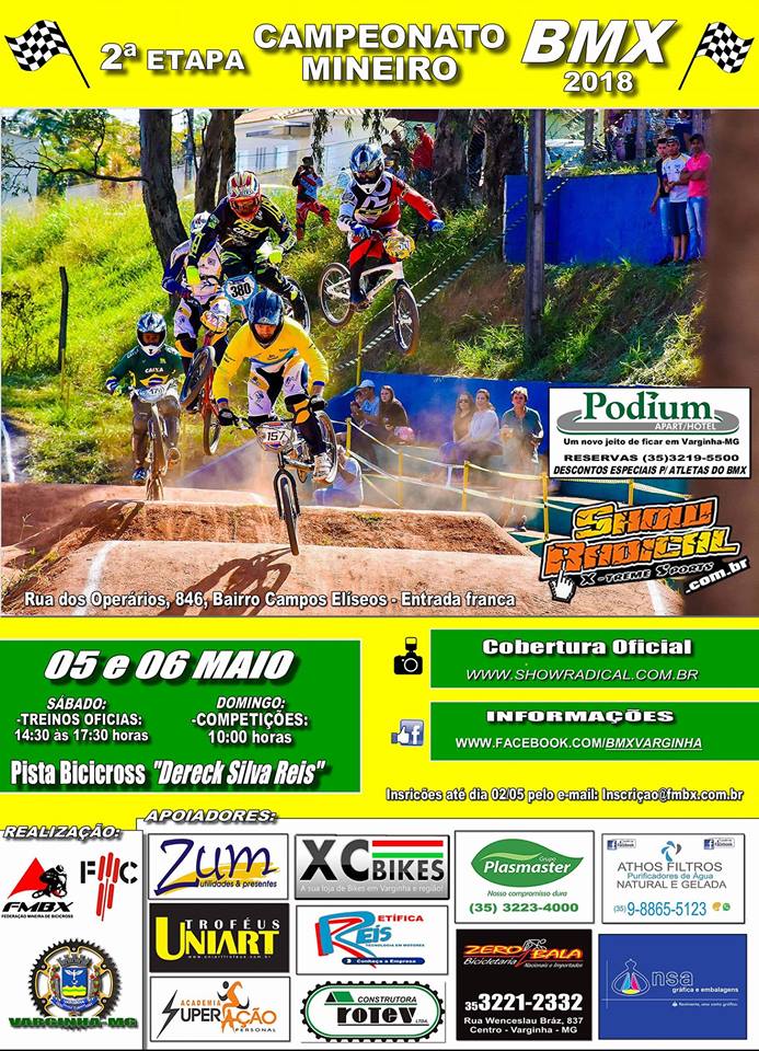 Nesse fim de semana a tradicional pista de BMX, Déreck Silva Reis em Varginha MG, recebe a 2ª etapa do Campeonato estadual de Ciclismo BMX no circuito. O evento tem total apoio da mídia Show Radical, seguem as informações!