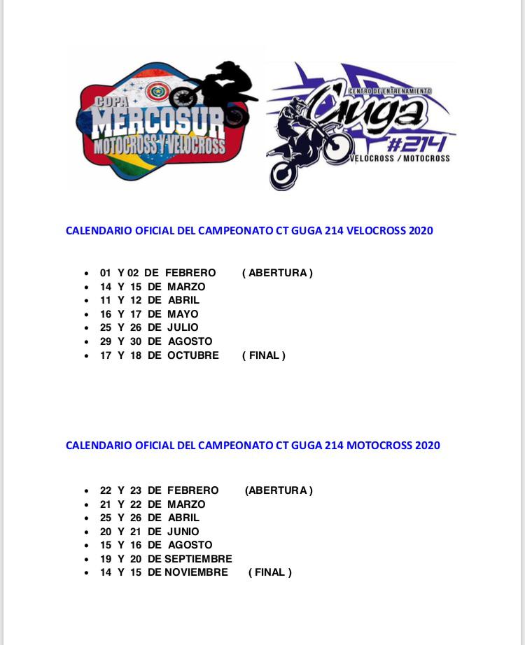 Em primeira mão apresentamos a vocês a primeira edição da Copa MercoSul de MX e de VX, cada um dos campeonatos contará com 7 etapas durante o ano de 2020 e está aberto para a participação de pilotos de todos os países da região MercoSul. O local fixo com estrutura de primeiro mundo para sediar as 14 etapas entre VX e MX será o CT Guga #214 em Salto Del Guairá PY, bem na divisa com o Brasil no estado do Paraná!