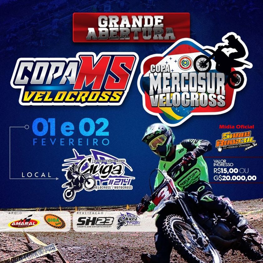 A primeira etapa a acontecer no local é a abertura da Copa MercoSul de Velocross nos dias 01 e 02 de fevereiro que além de tudo ainda será válida como abertura da temporada 2020 da tradicional Copa MS de Velocross que estará rompendo fronteiras e levando seu campeonato para o país vizinho, lembrando que a Copa MS já possui longa tradição e um alto nível de profissionalismo e organização o que torna a abertura do Velocross no MercoSul ainda mais valorizado!